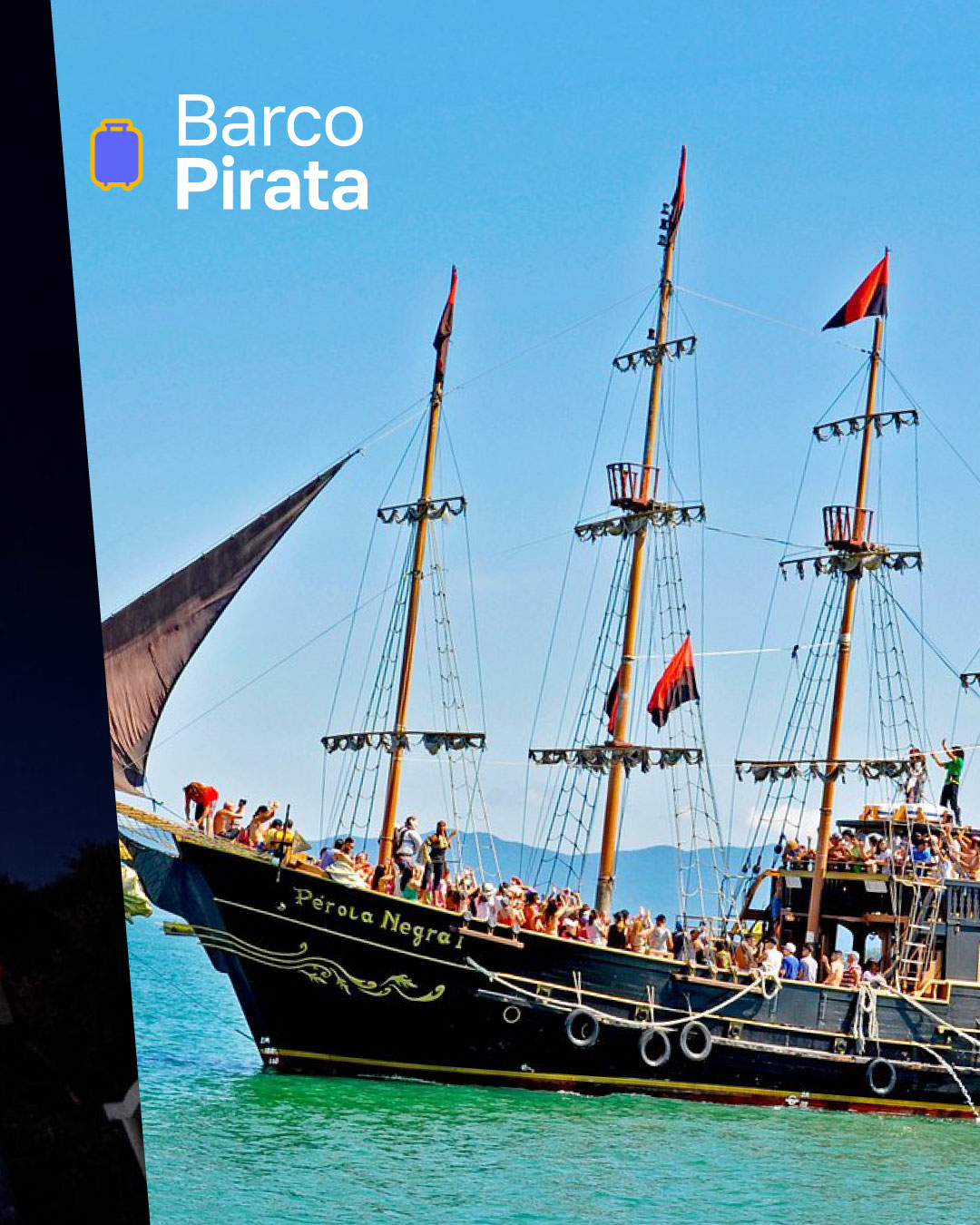 BARCO PIRATA: Salida desde Trapiche de Canasvieiras para realizar el paseo en Scuna, navegaremos sobre la zona norte de la isla, bordeando la hermosa isla de Anhatomirim o Ratones para conocer la historia del lugar, donde se encuentran fuertes construidos de la época colonial. De regreso anclamos frente a la Isla del Francés- Paseo de 3 horas aprox